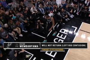 马刺官方:文班亚马左肋骨挫伤 下半场提前退赛