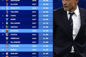 以下为意甲各队主教练具体年薪情况: