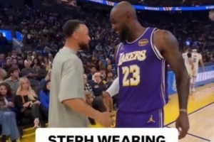 赛后,詹姆斯接受了记者采访。谈到库里今天穿自己的球鞋,他说道:“我的意思是,他是有史以来最伟大的球员之一。他穿了我的球鞋,这真是太酷了。我今天看到了照片,他去克利夫兰穿着我的第一款签名球鞋,然后今天又穿上了10代。这真的非常特别。我认为那款配色其实是为他设计的。我相信,当时他在耐克时我们为他制作了这款鞋。不过,勇士的配色在他脚上看起来确实不错。这很特别。”